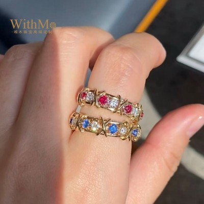 Red and Blue Corundum European and American Style Open Ring