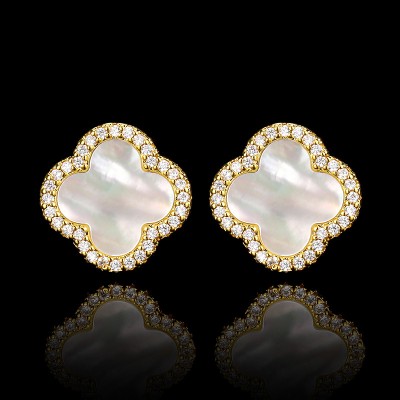 Natural Tiger's Eye Four-Leaf Clover Earrings